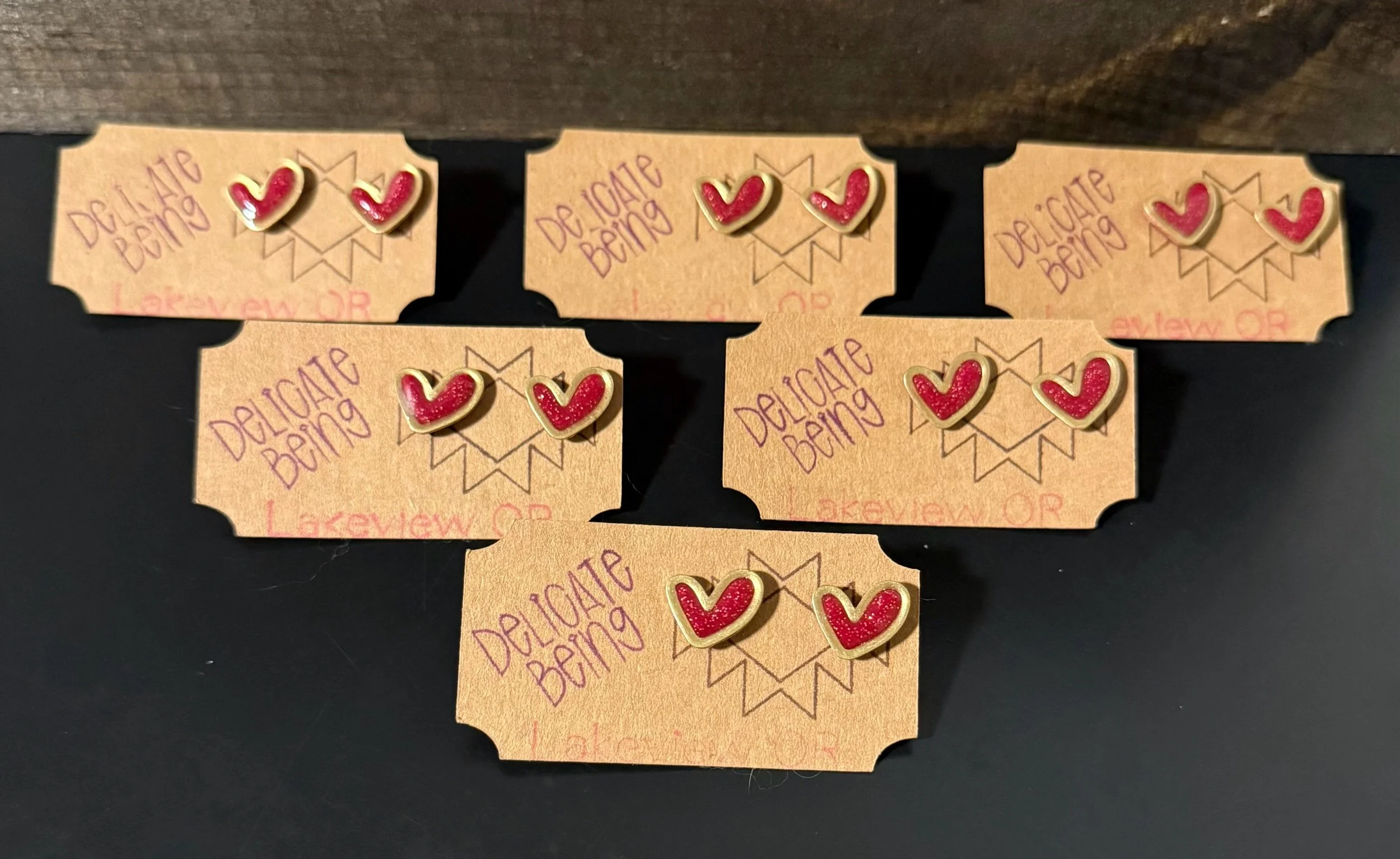Shop › Heart Studs Image 1 of 9 Image 2 of 9 Image 3 of 9 Image 4 of 9 Image 5 of 9 Image 6 of 9 Image 7 of 9 Image 8 of 9 Image 9 of 9 Heart Studs Sale Price: $8.00 Original Price: $10.00 Brass and clay heart studs. Lightweight, great for any occasion. Color: Pink White Red Purple Add To Cart Added! Brass and clay heart studs. Lightweight, great for any occasion.